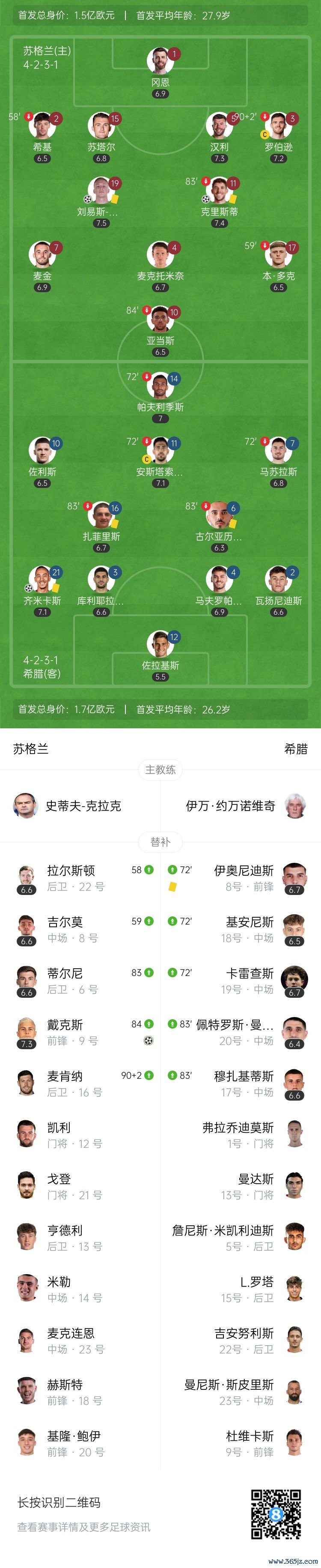 世初赛-苏格兰3-1打败希腊,积7分与榜首丹麦同分