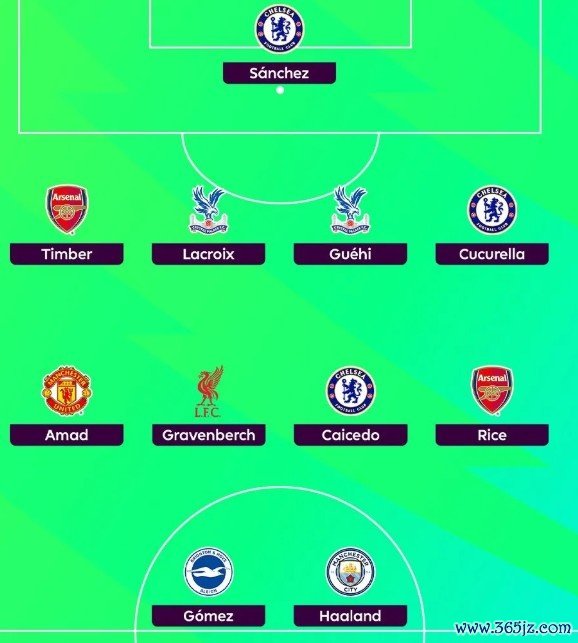 中场:阿玛德(曼联)、赫拉芬贝赫(利物浦)、凯塞多(切尔西)、赖斯(阿森纳)