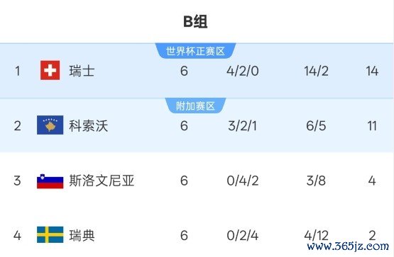 瑞士1-1科索沃积14分小组头名纵贯全国杯,科索沃将缔造附加赛