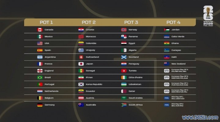 国外足联公布2026天下杯抽签时候,说明各球队分档情况,欧洲区附加赛和跨洲附加赛球队若晋级将分入四挡。