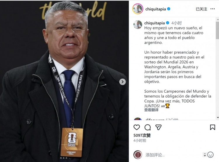 阿根廷足协主席社媒:簇新的梦思已出发,咱们肩负着卫冕的处事