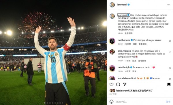 09月05日讯 世初赛南好意思区第17轮,阿根廷3-0完胜委内瑞拉,梅西梅开二度。赛后梅西发布社媒,缅念念了我方在阿根廷国度队的终末一场原土主场比赛。 梅西在社媒发文写说念:“一个畸形高出的夜晚,兴隆得让我于今痛苦以对。至心感谢通盘东说念主的爱和一直以来的相沿。无论发生什么,无论曩昔如何,惟一天主知说念……阿根廷加油!” (社媒完) 当天上昼南好意思世初赛第17轮,梅西梅开二度,阿根廷3-0委内瑞拉。赛后梅西给与了采访,他示意这是他在阿根廷主场的终末一场比赛。......
