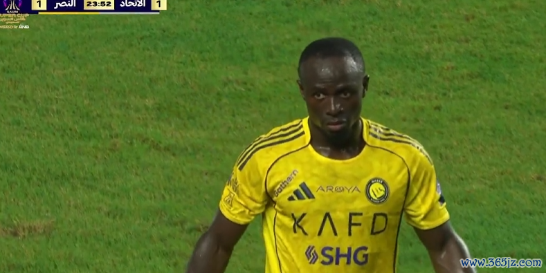 第22分钟,马内在门将倒地充公皮球的情况下一脚踩在对方的小腹上。主裁判向马内出示黄牌,这让吉达聚合球员至极不悦。
