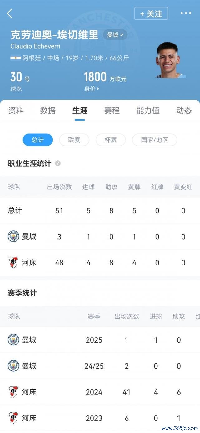 19岁的埃切维里冬窗细腻加入曼城声威,当今仅为曼城出场过3次,孝顺1粒进球,现身价1800万欧。