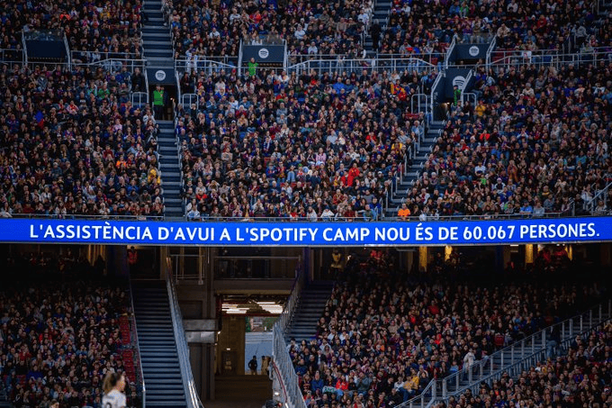 共有60067名球迷抵达诺坎普运动活动 场 观战,这一人数创下运动活动 场 改造以来的上座新记录 ,同时也是本赛季该运动活动 场 的最高观赛人群 人数。
