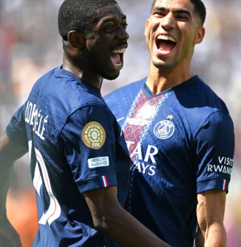 盘带主导,登贝莱、克瓦拉茨赫利亚、杜埃三叉戟冲击残阵后防。