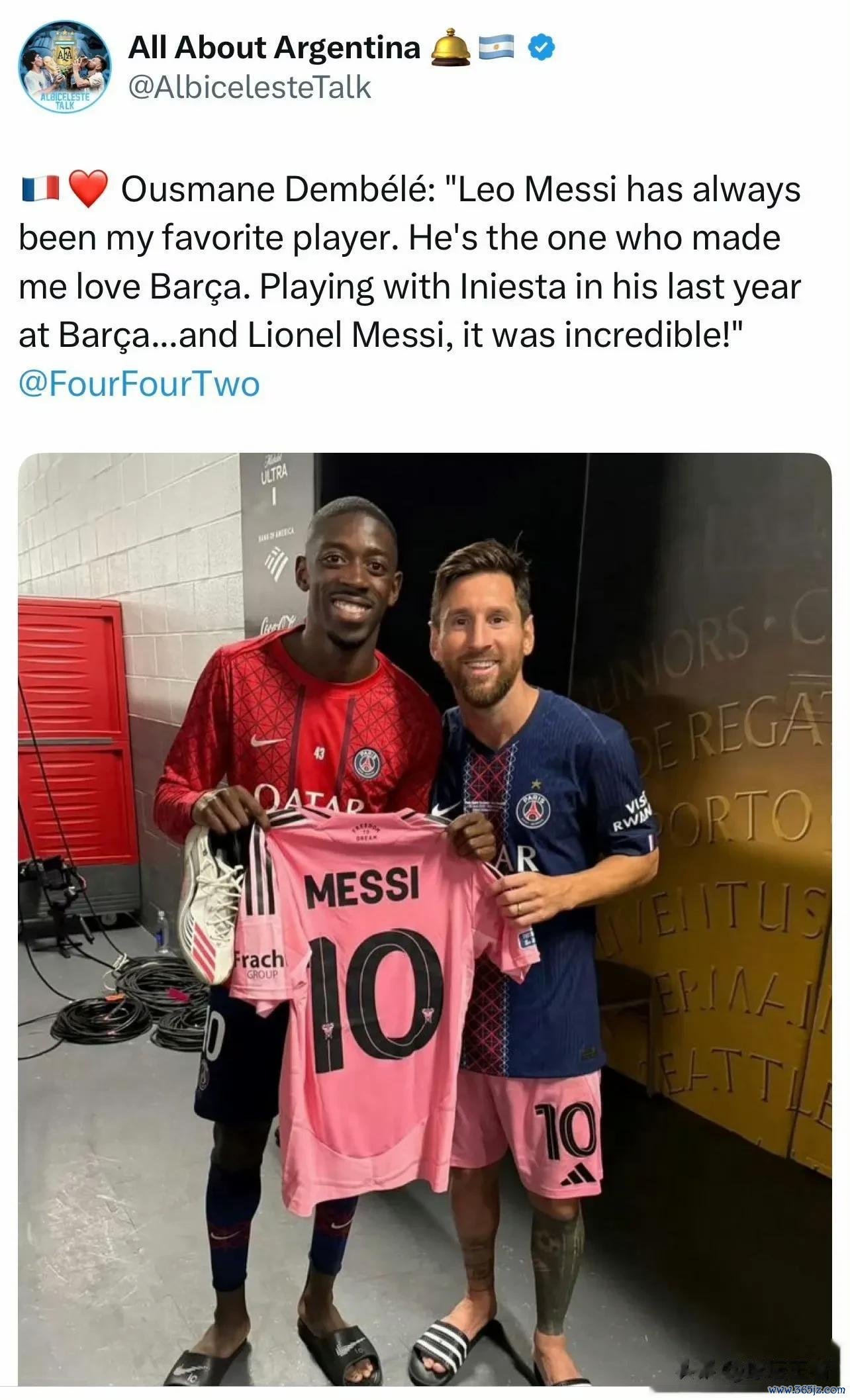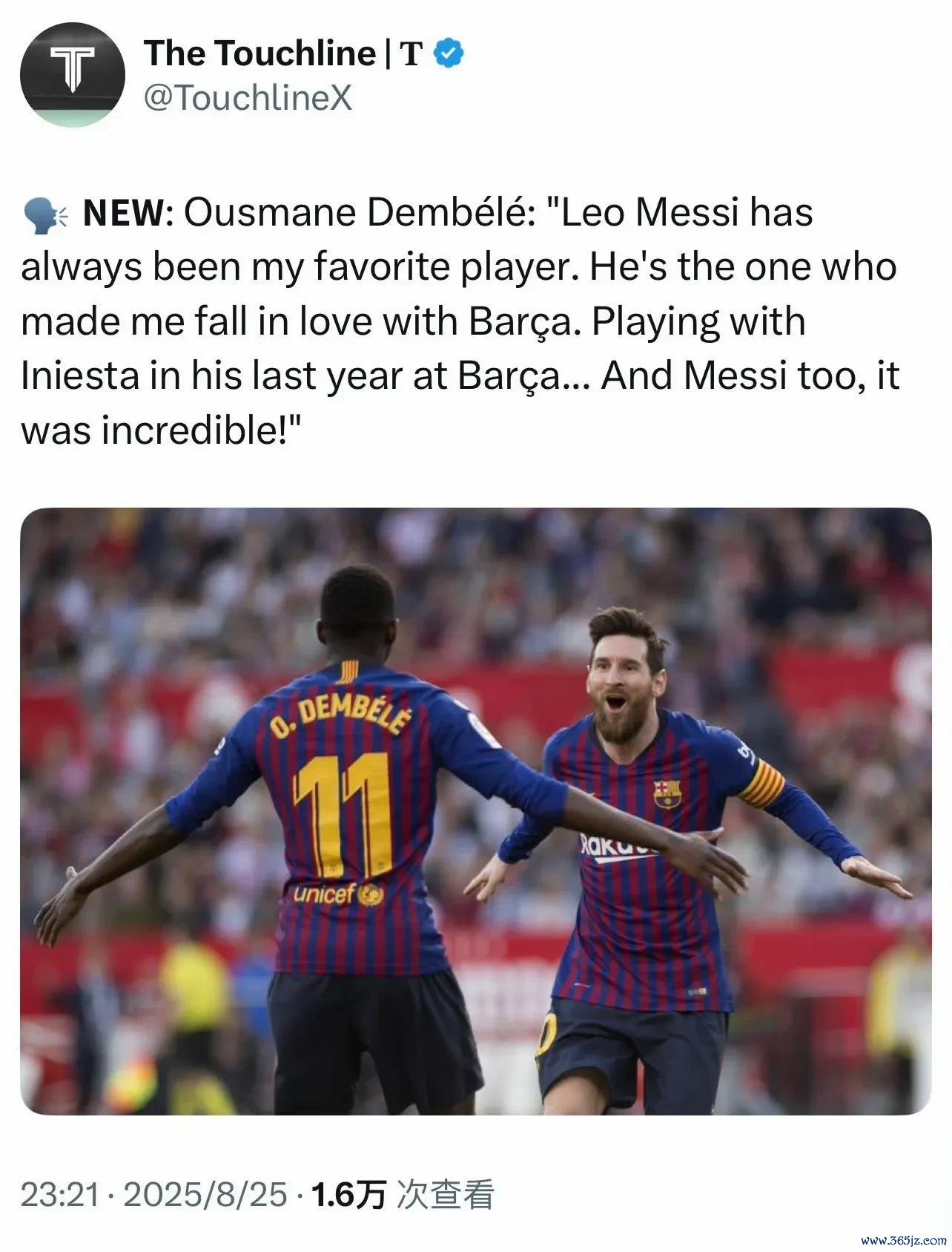 登贝莱: 梅西一直是我最可爱的球员, 是他让我爱上了巴萨。