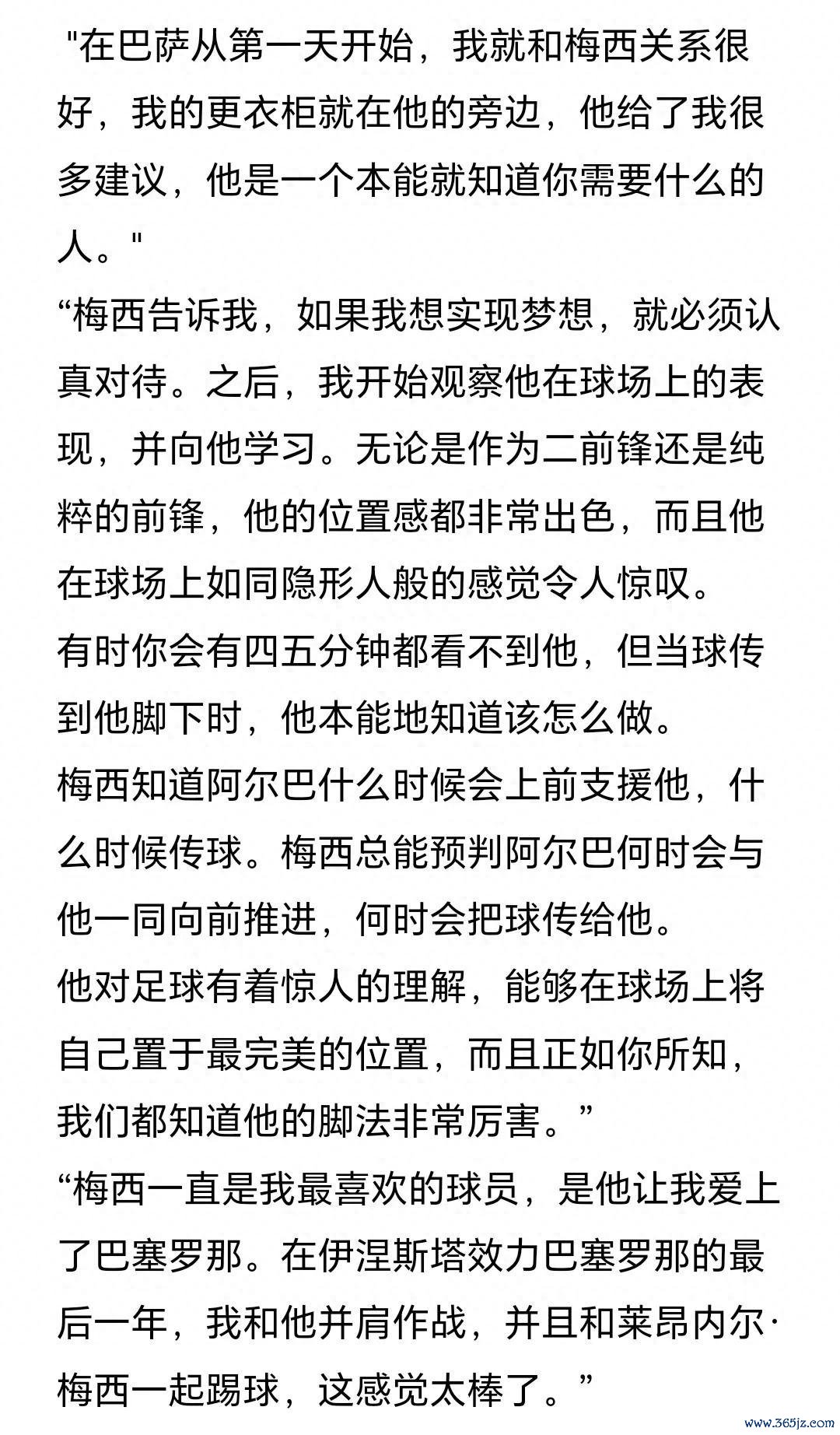 当被记者问到和梅西合营感受时,登贝莱提及从他来到巴萨的第一天起,他和梅西的关系就很好,:梅西一直是我最可爱的球员。是他让我爱上了巴萨。在伊涅斯塔遵循巴萨的临了一年与他通盘踢球......还有梅西,这太不能念念议了。”