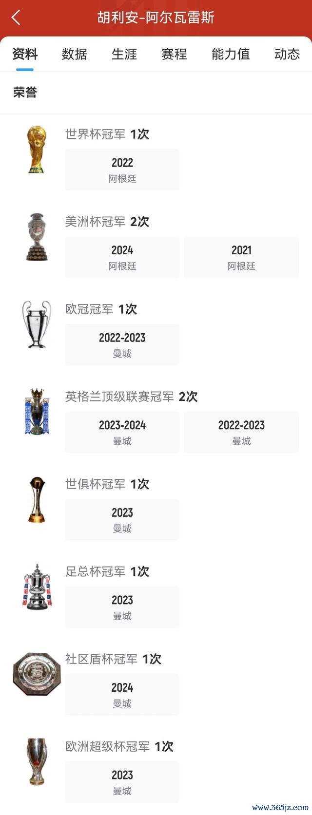 自2017年从河床出说念成为劳动球员以来,阿尔瓦雷斯此前每个赛季都能拿到冠军,7个赛季在俱乐部和国度队共拿到17座冠军奖杯。