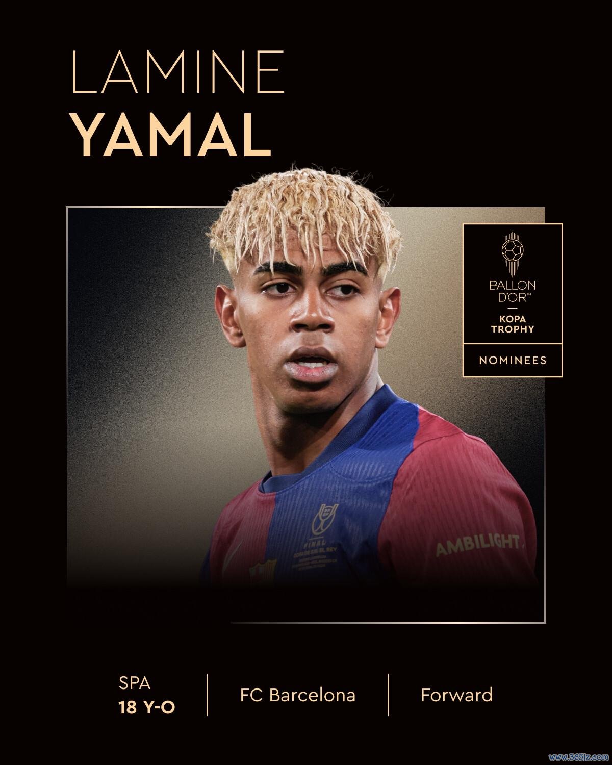 2025科帕奖候选名单:杜埃、亚马尔领衔,赫伊森、埃斯特旺在列