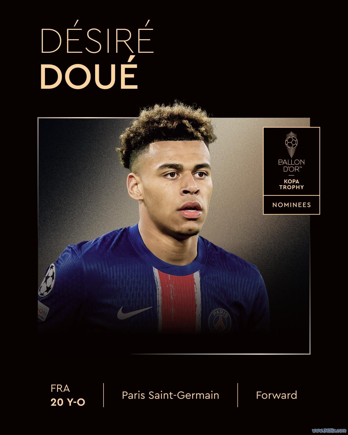 雷速体育8月7日讯 《法国足球》杂志本日公布了2025年科帕奖的候选名单。