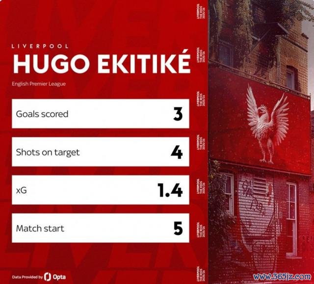 据媒体统计,埃基蒂克英超开局5场比赛齐首发出战,射正4次,预期进球1.4粒,打进3球。