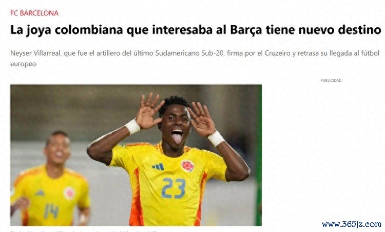 直播吧9月20日讯 据《逐日体育报》报说念,巴萨曾温雅的哥伦比亚新星内塞尔-比利亚雷亚尔(Neyser Villarreal)不会登陆西甲,他照旧和克鲁塞罗预签合同,将于年底加盟并签约至2030年。