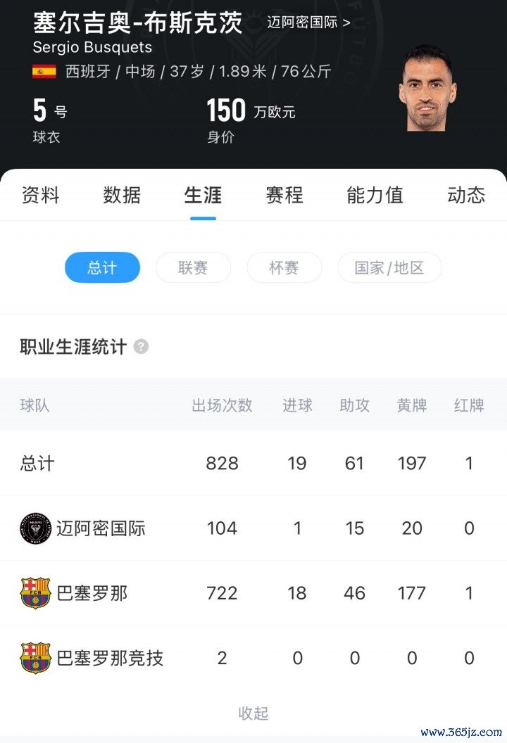2023年夏,布斯克茨加盟迈阿密外洋,落拓现在共为球队出战104场,打进1球助攻15次,匡助球队夺得了1次定约杯冠军和1次支撑者盾冠军(老例赛冠军)。