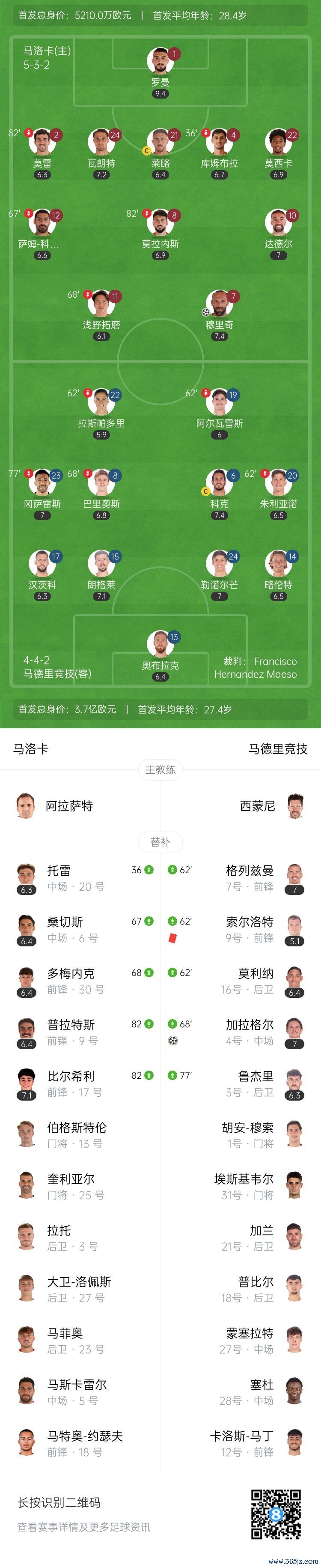 第79分钟,马竞反击契机,莫利纳上抢一脚打穿防地,略伦特加快插上禁区右侧扣门被扑,加拉格尔跟进补射上钩,十东说念主马竞1-0朝上↓