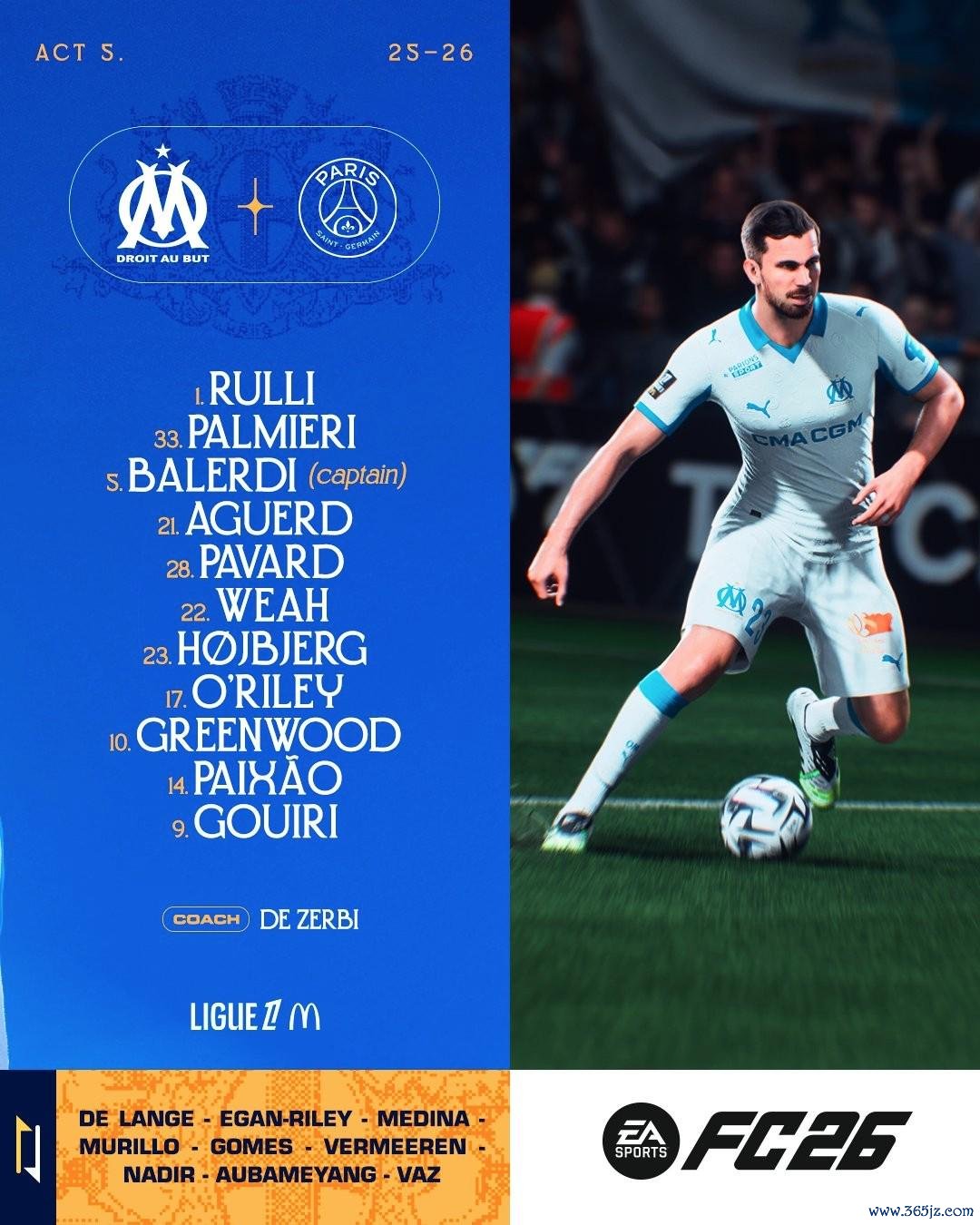 北京时刻9月23日凌晨2点,法甲第5轮迎来法国国度德比,巴黎客战马赛。赛前,两边公布首发威望。