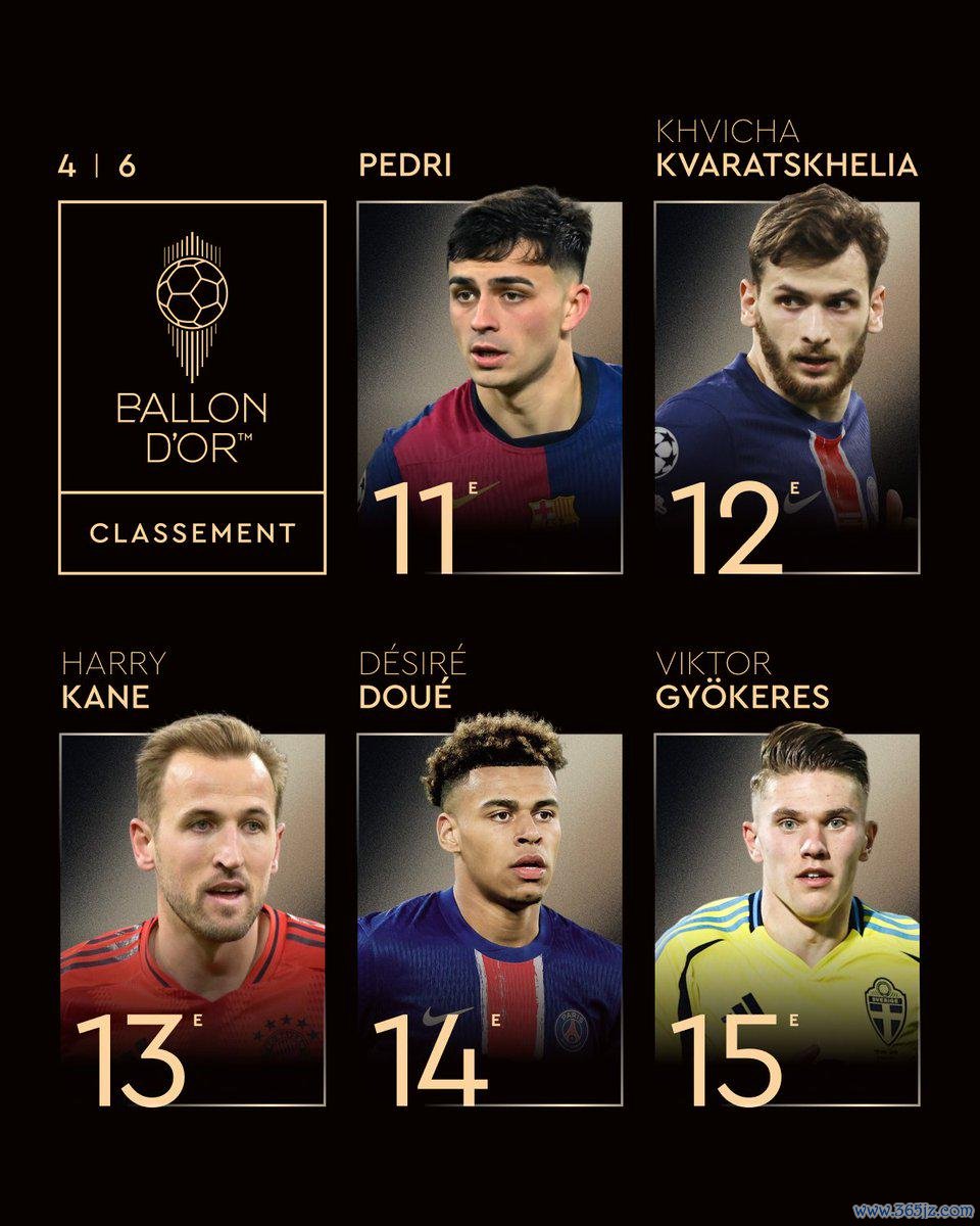 雷速体育9月23日讯 2025金球奖名次不竭公布,第11-15位的球员还是揭晓。