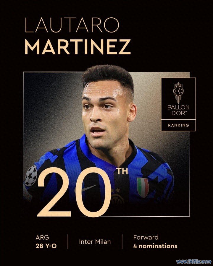 劳塔罗积年金球奖排行: 2024年第7最高, 本年第20与2023年换取
