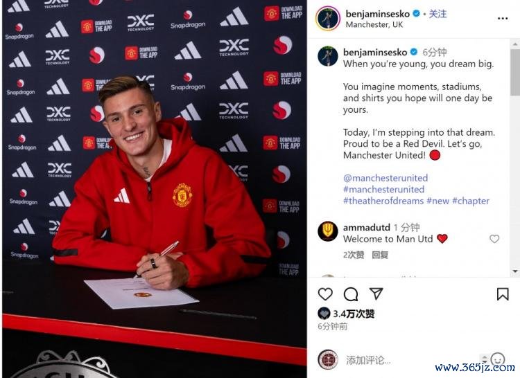 塞斯科配文:“当你年青时,你会怀揣庞杂梦念念。你会念念象那些时辰、球场和球衣,期盼有一天它们属于你。如今,我正达成这个梦念念。很自负成为红魔的一员。加油,曼联!”