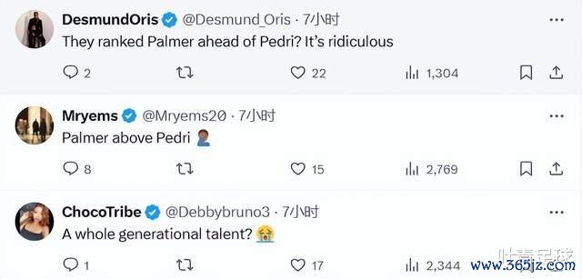 球迷的主流不雅点:“真实见笑,失误!帕尔默齐名依次10,佩德里果然还不如帕尔默?”