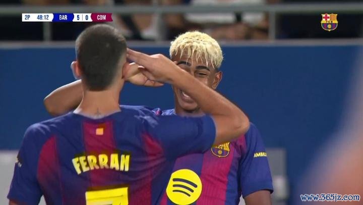 直播吧08月11日讯 甘伯杯巴萨vs科莫第48分钟,兜射破门,本场完了双响,随后作念拉什福德经典庆祝手脚,巴萨5-0跨越科莫!