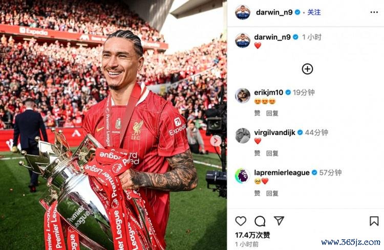 努涅斯社媒告别赤军晒英超冠军奖杯:利物浦永远是我东说念主生的一部分