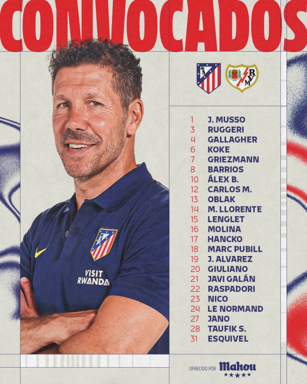 雷速体育9月24日讯 北京工夫未来凌晨3:30,马德里竞技将在西甲第六轮主场迎战巴列卡诺。赛前马德里竞技官方公布了本场比赛的大名单,其中球队的阿根廷时尚阿尔瓦雷斯领衔锋线,法国时尚格列兹曼在列。 马竞vs巴列卡诺大名单: 门将:穆索、奥布拉克、埃斯基韦尔 后卫:略伦特、朗格莱、莫利纳、汉茨科、普比尔、加兰、勒诺尔芒、 中场:鲁杰里、加拉格尔、科克、巴里奥斯、朱利亚诺、蒙塞拉特、陶菲克·赛杜 时尚:格列兹曼、阿尔瓦雷斯、巴埃纳、卡洛斯、拉斯帕多里、尼科·冈萨雷斯......