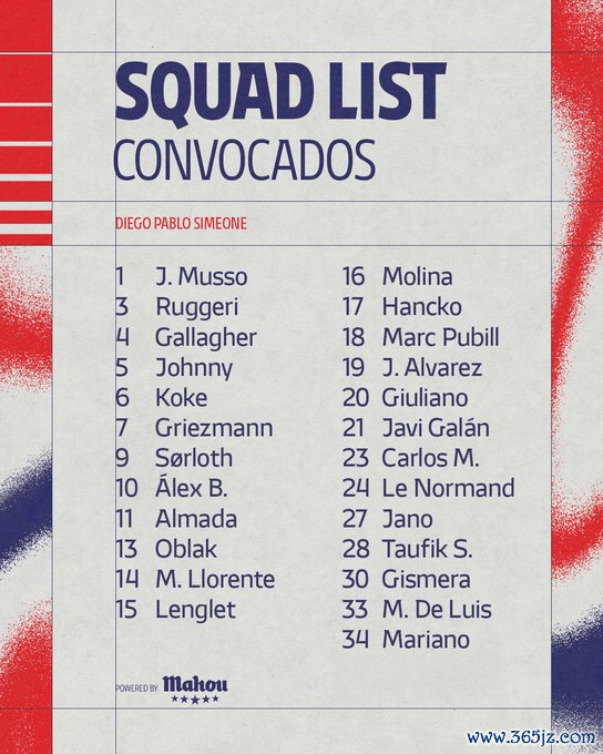 虎扑08月08日讯北京时辰8月9日晚23时,马竞将作客圣詹姆斯公园和纽卡斯尔进行季前热身赛。赛前马竞公布了前去英国的大名单。巴里奥斯链接伤停。 圆善名单 [门将]1-穆索、13-奥布拉克、33-马里奥-德-路易斯 [后卫]3-鲁杰里、15-朗格莱、16-莫利纳、17-汉茨科、18-普比尔、21-哈维-加兰、24-勒诺尔芒、34-马里亚诺 [中场]4-加拉格尔、5-卡多索、6-科克、10-巴埃纳、14-略伦特、27-哈诺、28-陶菲克、30-希斯梅拉 [前卫]7-格列兹曼、9-......