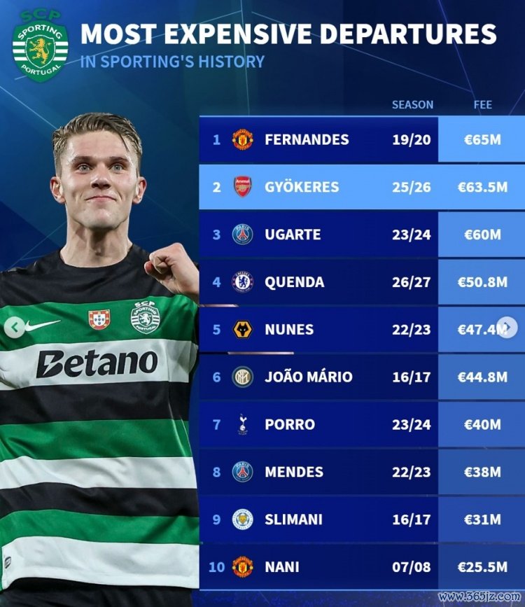 7月27日讯 阿森纳还是官宣签下瑞典中锋约克雷斯,《转会市集》也统计了葡体历史最贵卖情面况。