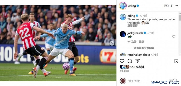 哈兰德社媒晒出比赛像片庆祝成功,配文:“蹙迫的三分,我们休赛期之后见!”
