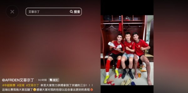 8月17日讯 中超联赛第21轮,长春亚泰主场1-0打败梅州客家。赛后,亚泰边锋艾菲尔丁更新了个东说念主酬酢媒体。 本场比赛,艾菲尔丁替补出场。赛后,艾菲尔丁写说念:忙绿民众发愤拼搏拿到了重要的三分!!!这场比赛我拖民众后腿了😞感谢民众对我的包容。以后会拿出更好简直认❤️🔥 本赛季夏窗,艾菲尔丁租赁加盟长春亚泰,现在代表球队出战3场,其中2次首发。......
