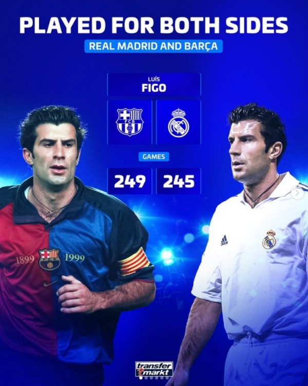 10月26日讯 本轮西甲焦点战行将迎来皇马和巴萨的强强对决,《转会市集》则清点了近些年曾先后效率过这两家死敌的名将。不知吧友们还能回忆起其他球员吗? 菲戈:巴萨249场、皇马245场 劳德鲁普:巴萨226场、皇马76场 恩里克:巴萨300场、皇马213场 罗纳尔多:巴萨49场、皇马177场 哈吉:巴萨51场、皇马84场 埃托奥:巴萨199场、皇马7场......