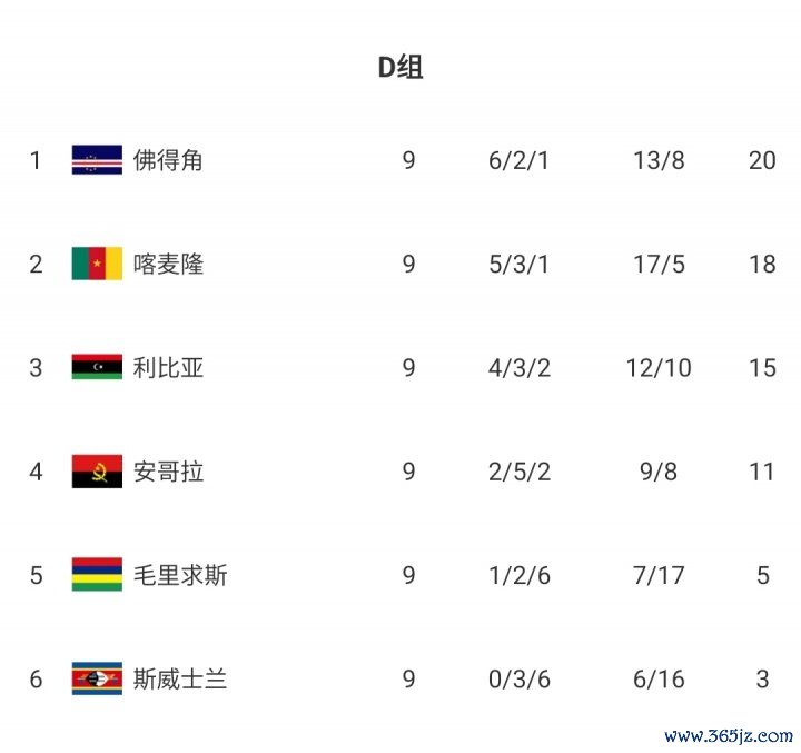 世初赛仅剩终末一轮,佛得角仍2分领跑,下轮靠近小组垫底的斯威士兰,赢球即可确保队史初次晋级寰球杯;喀麦隆第2落伍2分,但抓有7个净胜球上风。