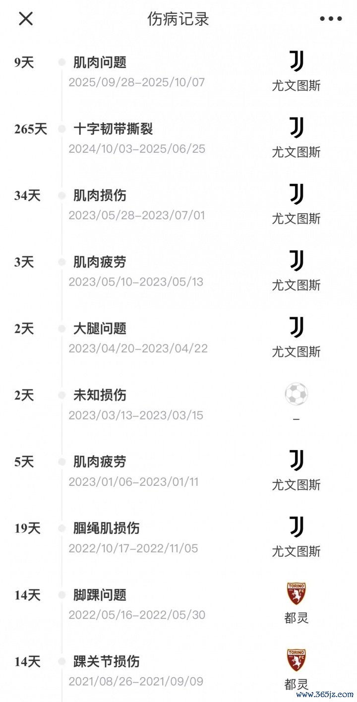 他在本年8月重返赛场,本赛季他为尤文出场5次,他上一次为球队出场是9月28日1-1战平亚特兰大的比赛。