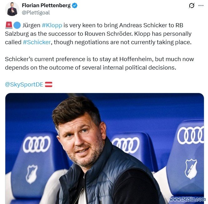 10月30日讯 记者Florian Plettenberg报说念,红牛大家足球总监克洛普相等渴慕为萨尔茨堡红牛引进霍芬海姆总监希克尔,以接替施罗德。
