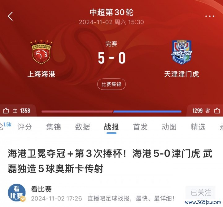 最终海港5-0津门虎成功卫冕。