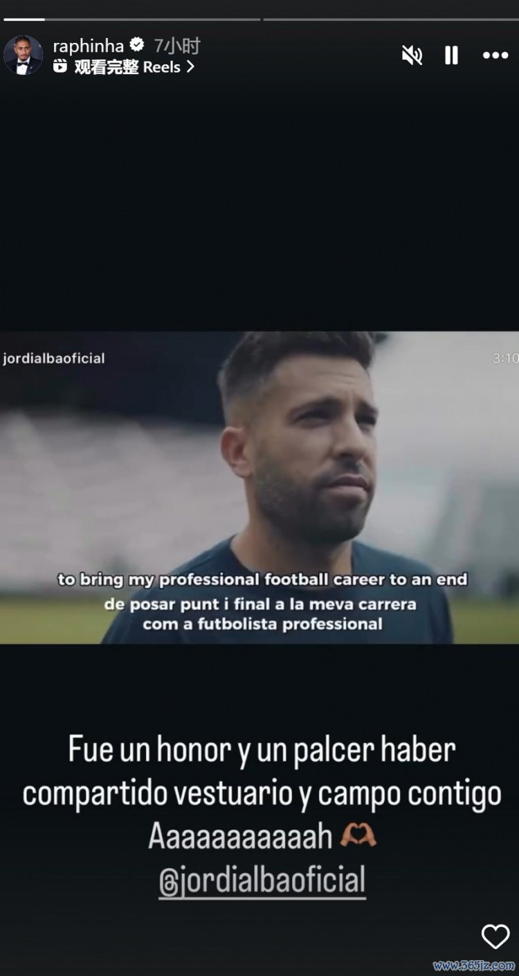 10月8日讯 西班牙边卫阿尔巴将在本赛季遣散后退役,拉菲尼亚社媒发文致意。