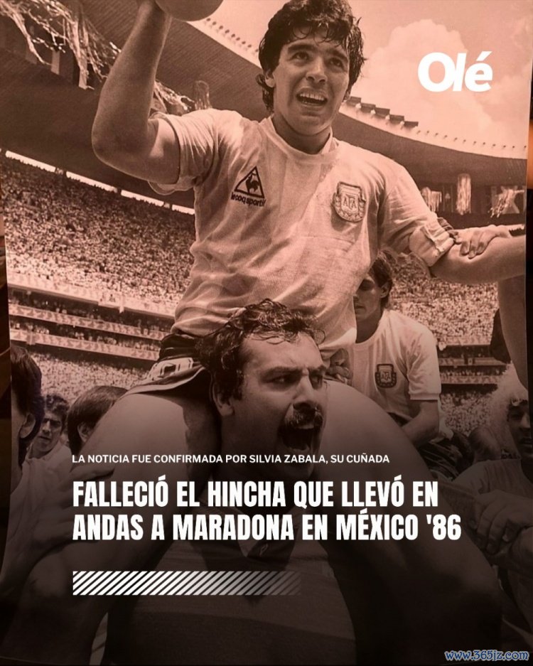 10月21日讯 据《奥莱报》推特发布的音讯,阿根廷知名球迷罗伯托-塞哈斯(Roberto Cejas)死一火,享年68岁。1986年寰宇杯阿根廷队夺冠后,塞哈斯让马拉多纳骑在我方脖子上一齐庆祝的相片已成经典瞬息。
