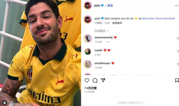 7月26日讯 不久前,米兰名宿帕托更新外交媒体,晒出了我方身穿米兰第三球衣的相片。 AC米兰隆重发布了2025/26赛季的新款第三球衣,帕托当今正在随米兰一皆张开亚洲行,帕托的老乡塞尔吉尼奥也一同随行,两东说念主共同参与了一系列买卖算作和与亚洲繁密球迷的碰头会。 帕托也穿上了这件新球衣,在我方的Instagram上发布了一张相片,并写下对米兰球迷的一句深情留言:“我将恒久是你们中的一员。”......